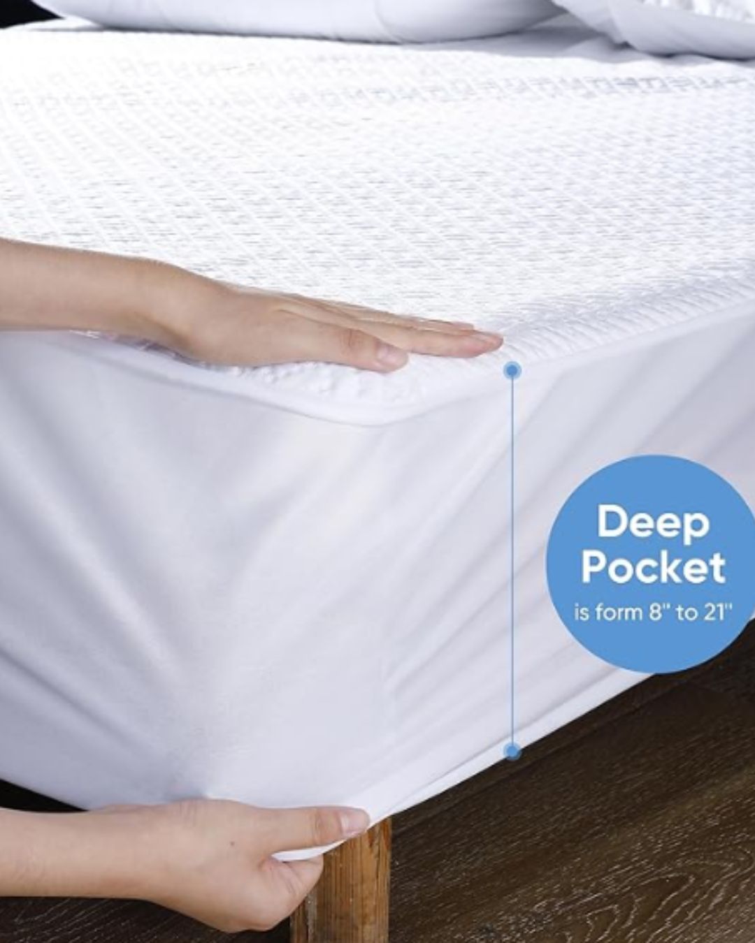 - Bolsillos profundos y diseño de sábana bajera: cada protector de colchón impermeable tiene un aspecto similar a una sábana y se retira y cambia fácilmente. Las faldas laterales tienen una banda elástica de punto que se tira de forma segura del colchón para garantizar un ajuste perfecto. Para proteger la superficie del colchón de fluidos, polvo y manchas. La funda es compatible con la gama de tamaños de 8 a 21 pulgadas. Nuestro bolsillo profundo está hecho para varios tipos de colchones, incluyendo látex, resorte y espuma viscoelástica.