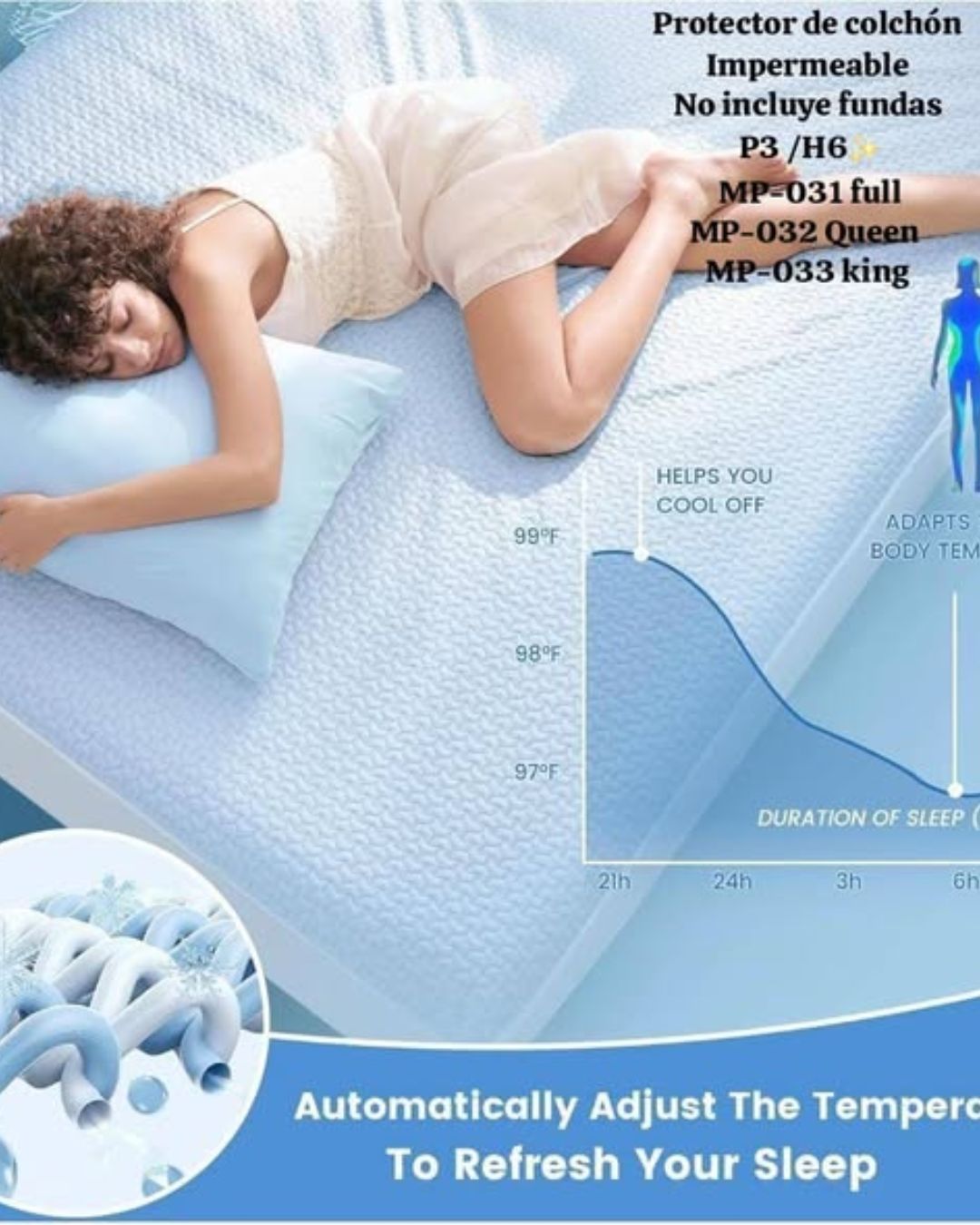 - Tela de aire 3D mejorada con función silenciosa: nuestro protector de colchón impermeable cool touch está hecho de tela de aire 3D, que solo deja pasar el aire mientras repele líquidos. enfria con el contacto de la piel. No solo protege tu colchón de líquidos, sino que también mejora la elasticidad y la capacidad de rotura del mechón. Esta funda protectora de colchón de tela, hecha de tela de bambú silenciosa y respaldo de TPU, detiene milagrosamente cualquier sonido arrugado y plástico. No generará ningún ruido ni alterará la sensación de tu colchón.